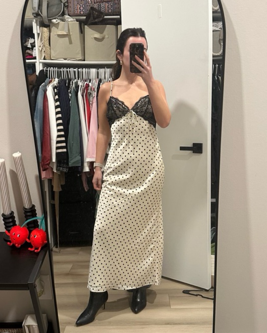 Black & Cream Polka Dot Lace Maxi Dress by Jessica Simpson - Pickle