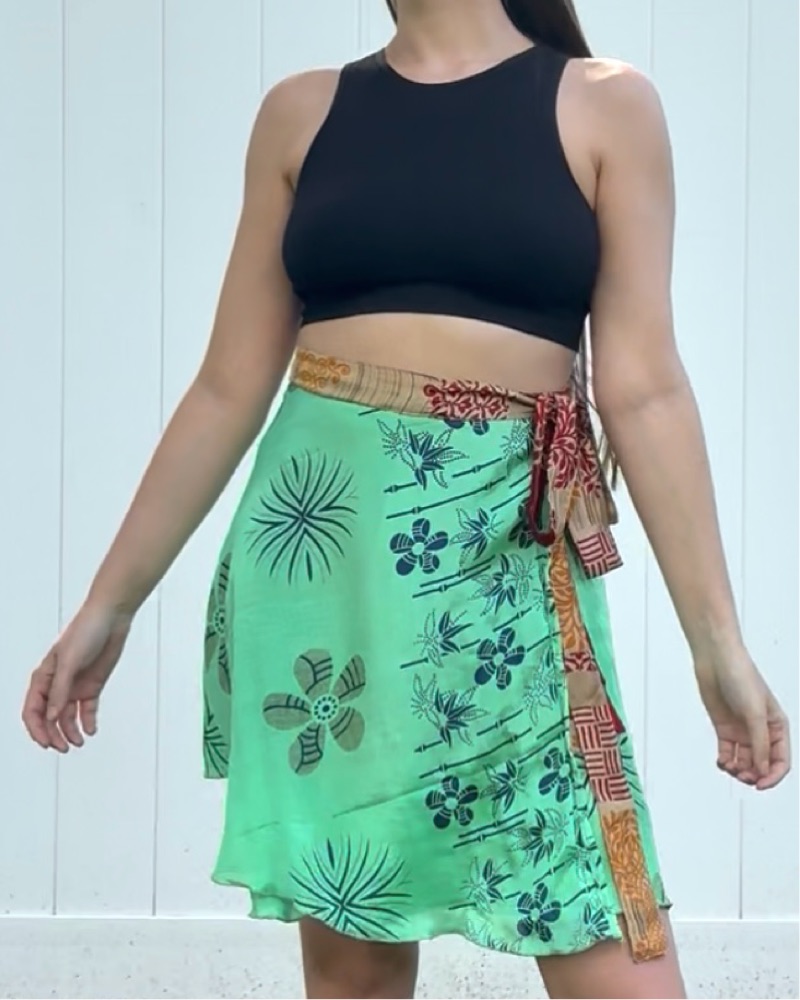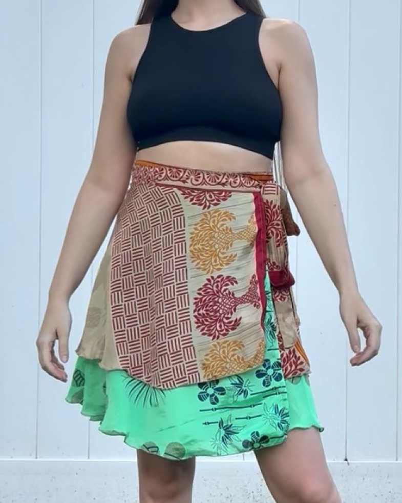 Lightweight yet luxurious, the wrap design flatters every body and works as a skirt, top, or cover-up. Perfect for travel or dancing at a festival.