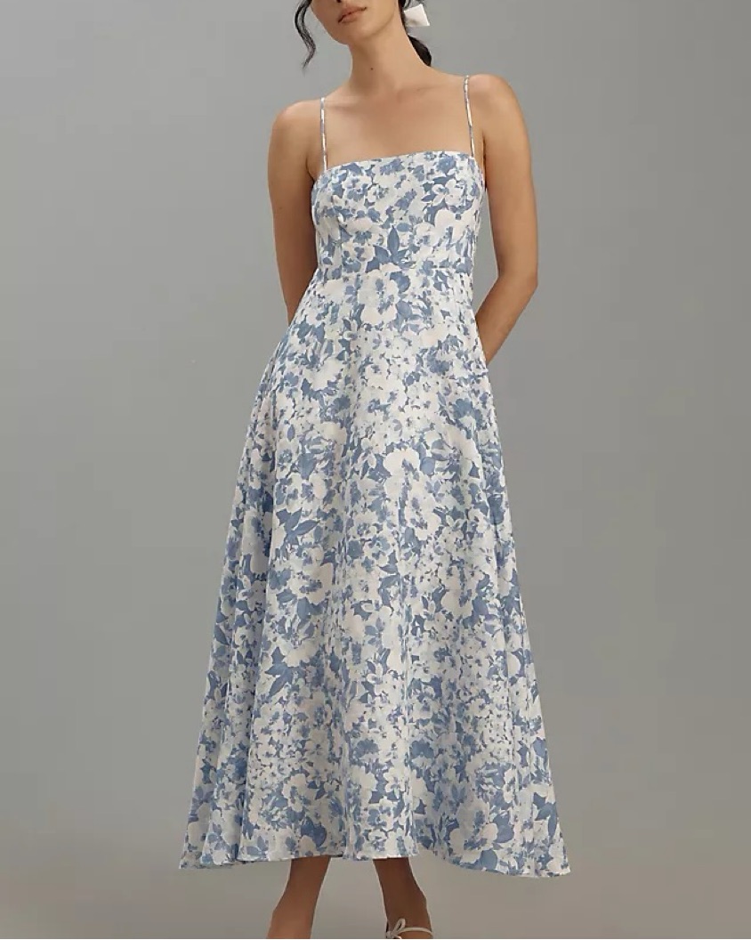 Perfect for a romantic summer date night or garden party. Fitted bodice with a full, flowy skirt — worn once for engagement photos. The pattern is Larkspur and isn’t available online anymore.