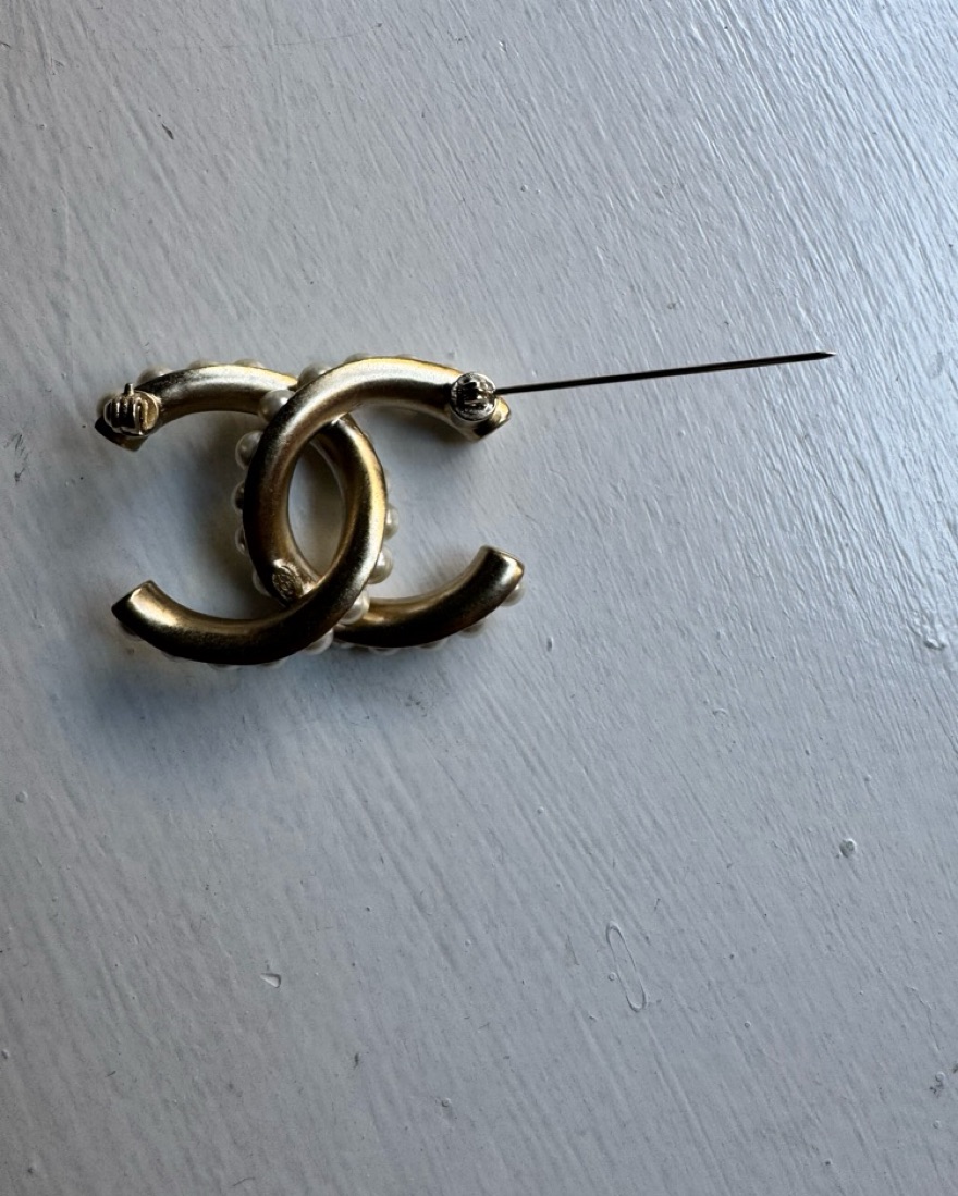 Authentic Chanel brooch silver with pearls, purchased in Paris. Fully functional clasp. Wear on jackets, oversized button downs, hats