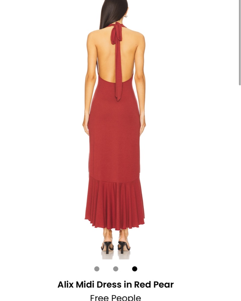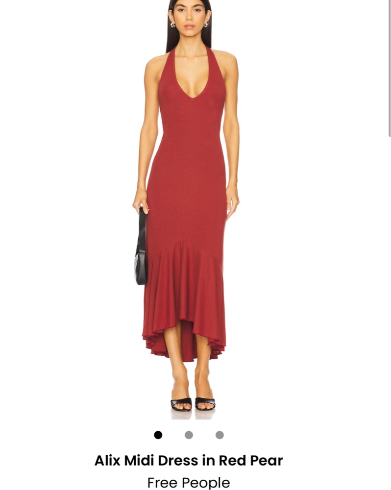 Red knit midi dress, x small runs big depending if you want it form fitting or true to size if looking for a looser relaxed look. Good quality sexy but comfortable dress