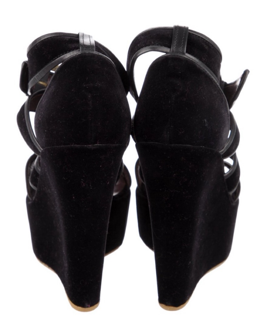 Etro velvet sandals with 5” heel. Comfortable enough for standing at the bar and dancing all night. Only worn inside for a party in my own apartment building, so in impeccable, like new condition.