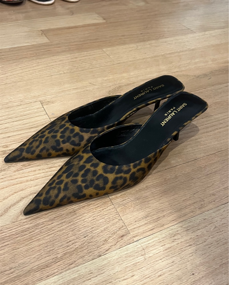 Few patterns are as timeless or confidence-boosting than leopard-print. YSL 'Cherish' slingback pumps are crafted from smooth grosgrain dabbled with spots and set on kitty heels. They're an easy way to introduce a little personality to understated outfits!! Size 9.5 (40) in perfect condition!