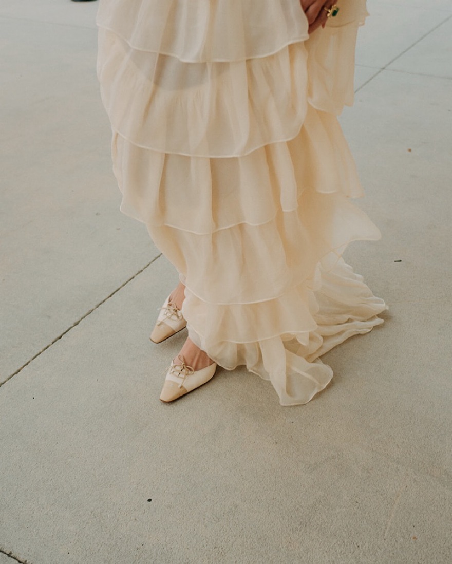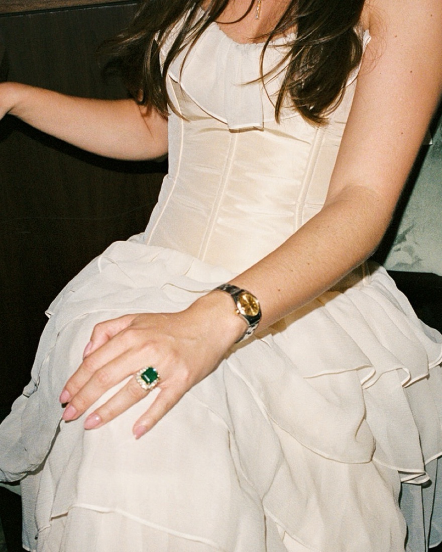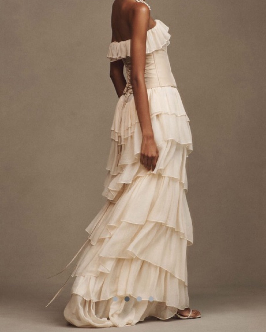 Mirror Palais Silk Ballet Russes Dress & corset. Both are a size small. The corset can be pulled to be very tight. Work for my engagement party and dry cleaned. Hemmed to reach the ground. I’m 5’4 and wore 2 inch heels. Handle with care as it has a train in the back.