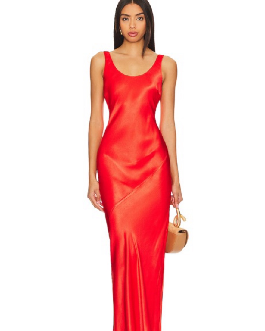 Adelyn bias dress in red - super flattering and the color is stunning. Wear at the bottom because I was too short for the dress 🫠.