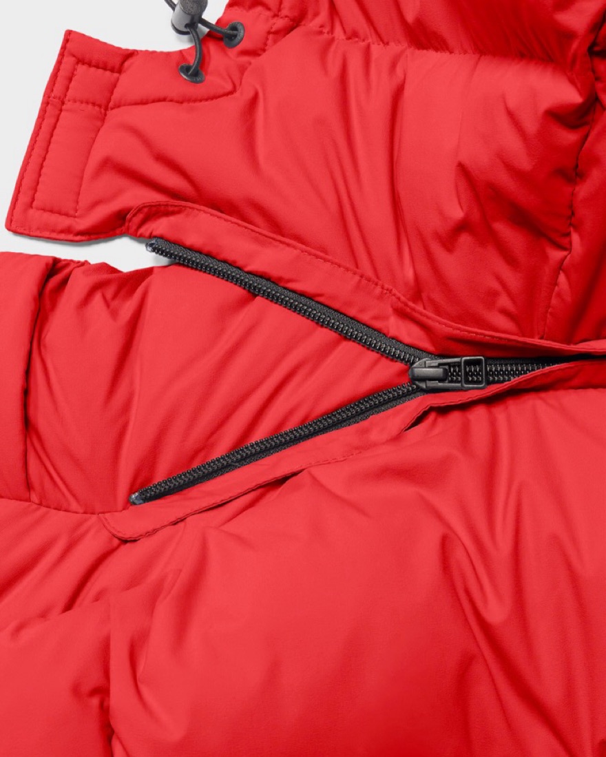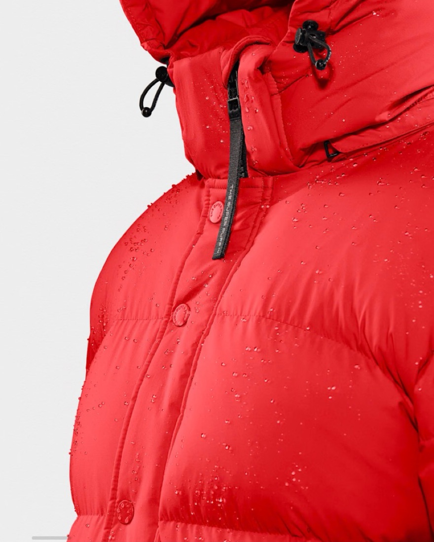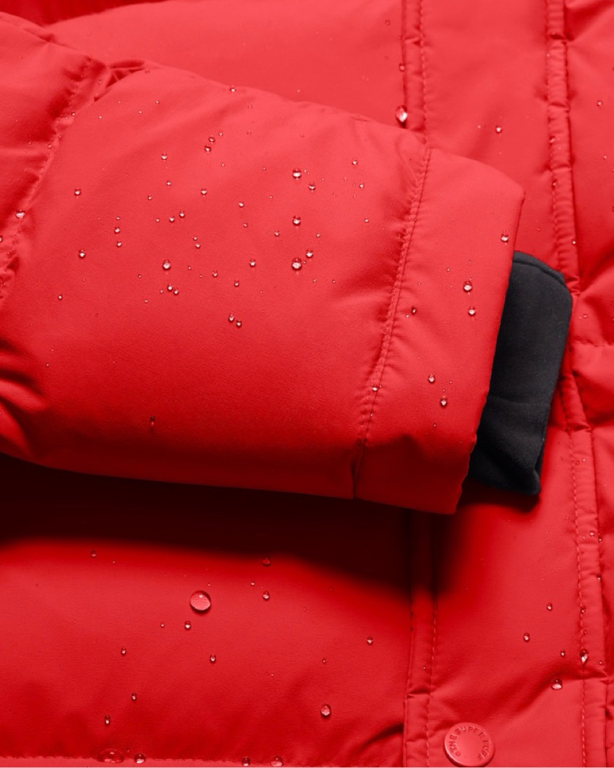 Aritzia Super Puff jacket in red, original length. Water-repellent and wind-resistant fabric