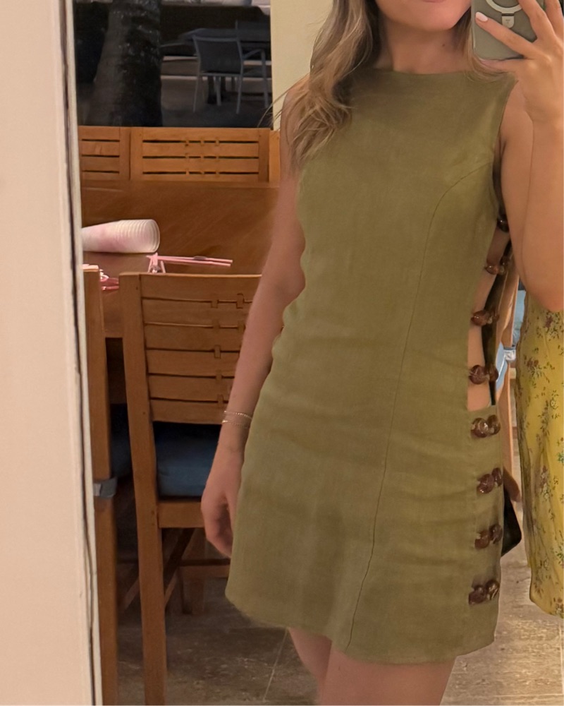 VRG GRL Tia Linen Mini Dress by VRG GRL - Pickle