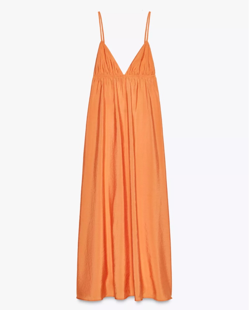 This stunning maxi dress is perfect for a chic summer outing or evening event. The bold orange hue and flowing silhouette make it a eye-catching and versatile choice.