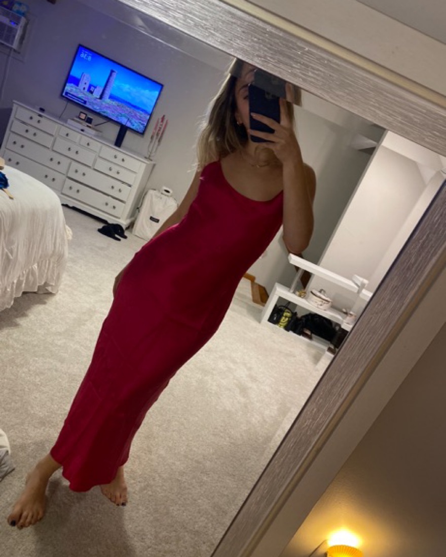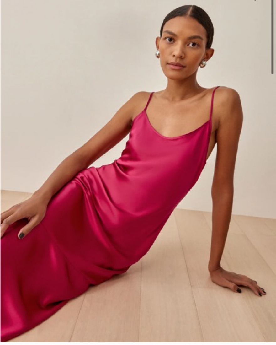 Silk , pink, reformation dress can dress up or down, worn once in perfect condition