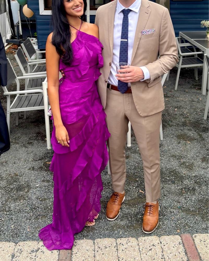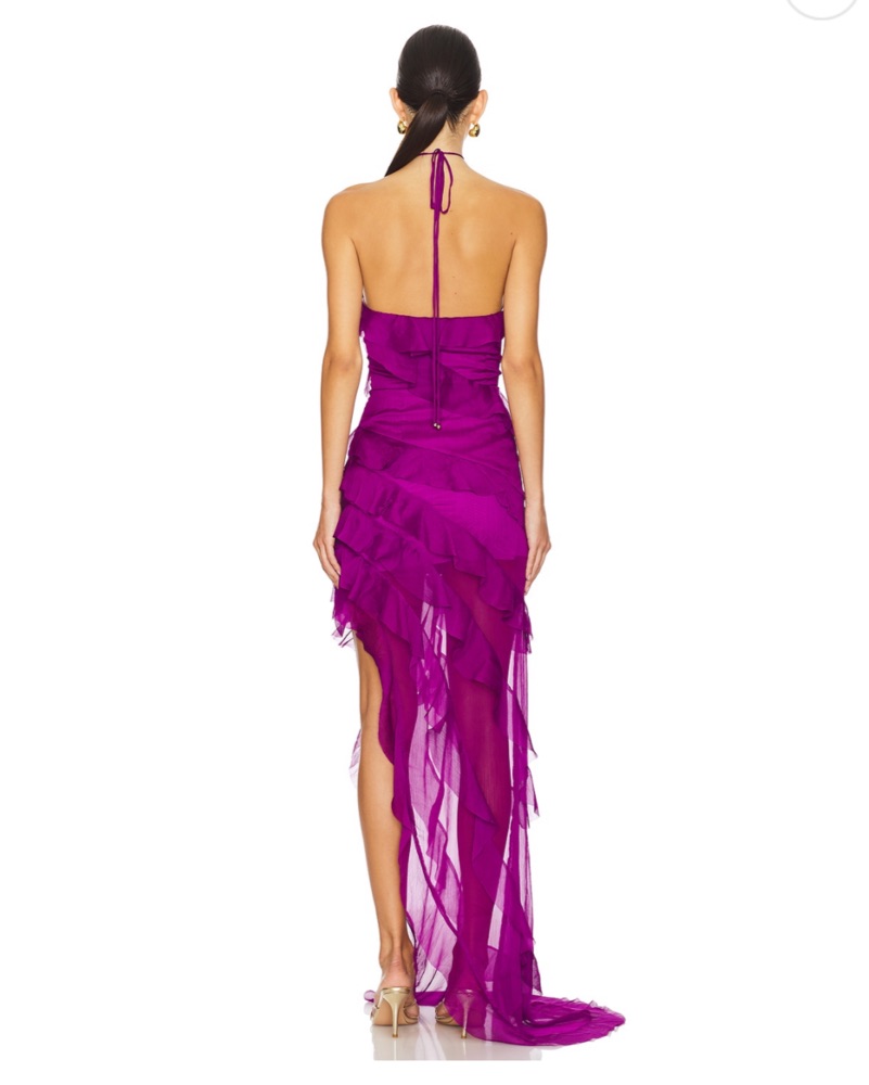 Revolve Elliatt Mia Gown In Orchid. The slip under is tailored to be a little bit longer.