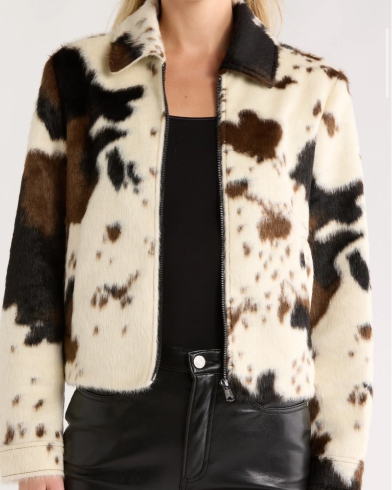 Cow Print Faux Fur Jacket by Bernardo - Pickle