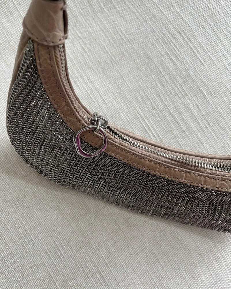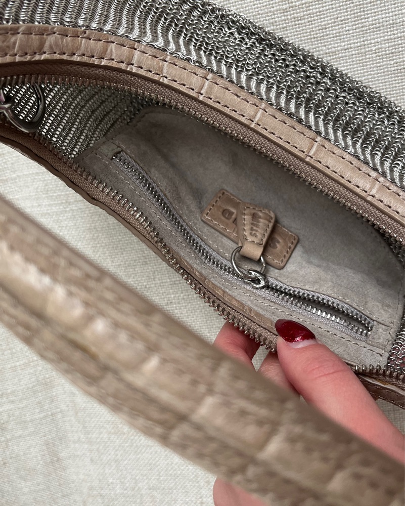This metallic mesh hobo bag is perfect for a night out with friends or a date night. The unique mesh design adds a modern and trendy touch to any outfit. Has a little card pocket inside to keep your cards safe!