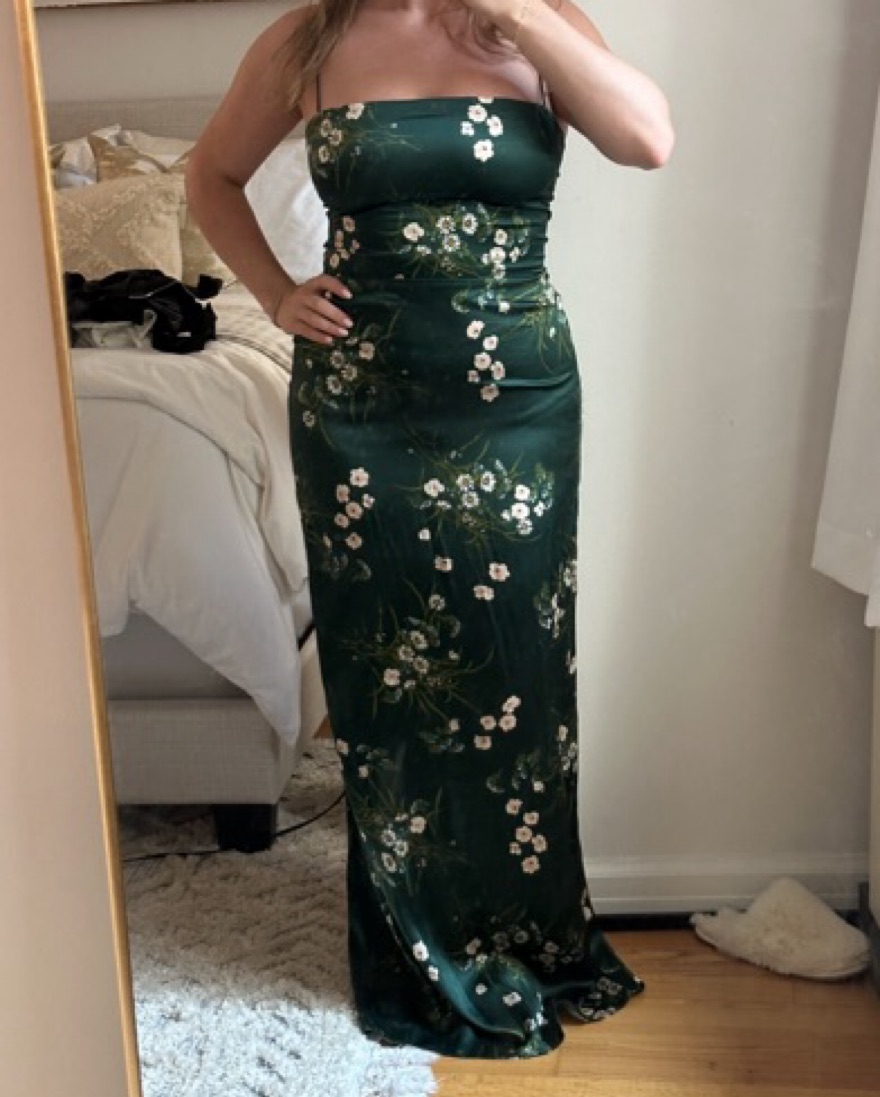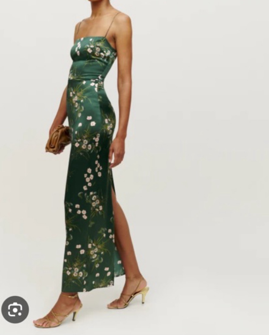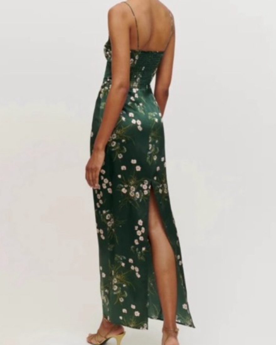 Dark green reformation frankie dress. Silk floral design