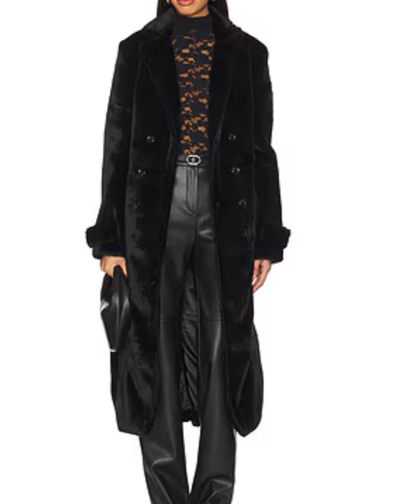 Faux Fur Trench Coat in Black BARDOT
