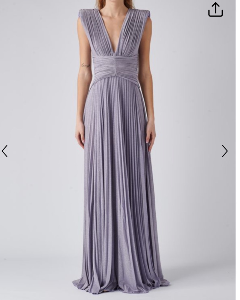 Long deep-v gown with side slits in lavender / purple! Material is lurex jersey. Perfect for a black tie wedding!