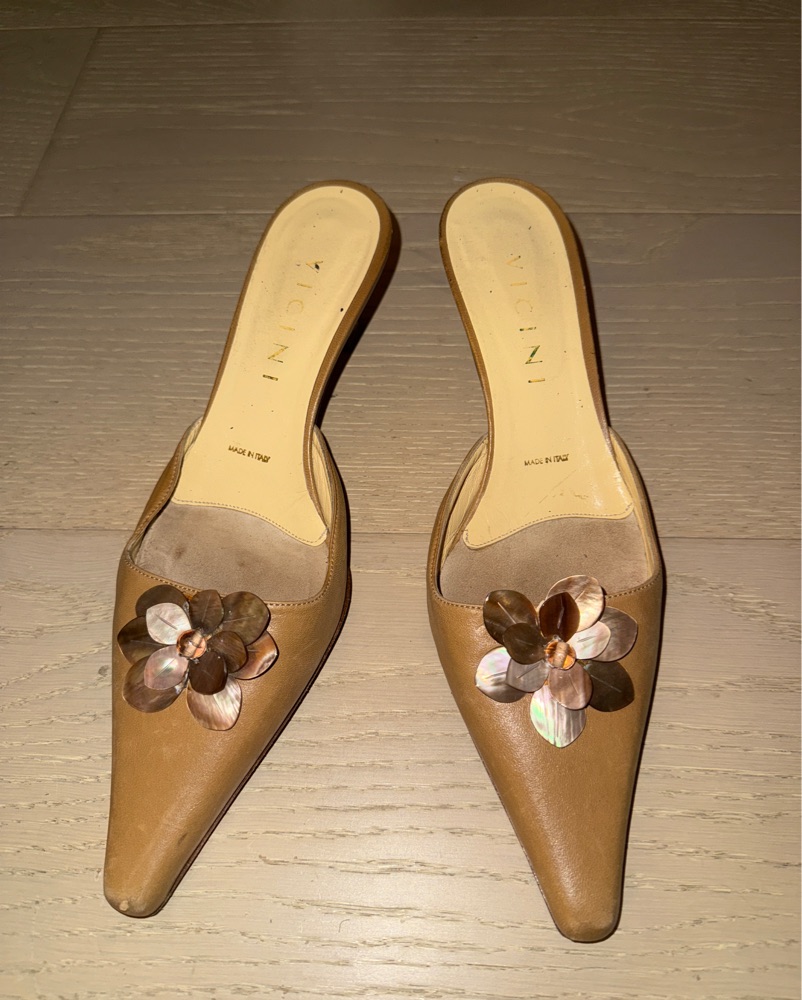 Elegant Floral-Embellished Nude Mules by Vintage - Pickle