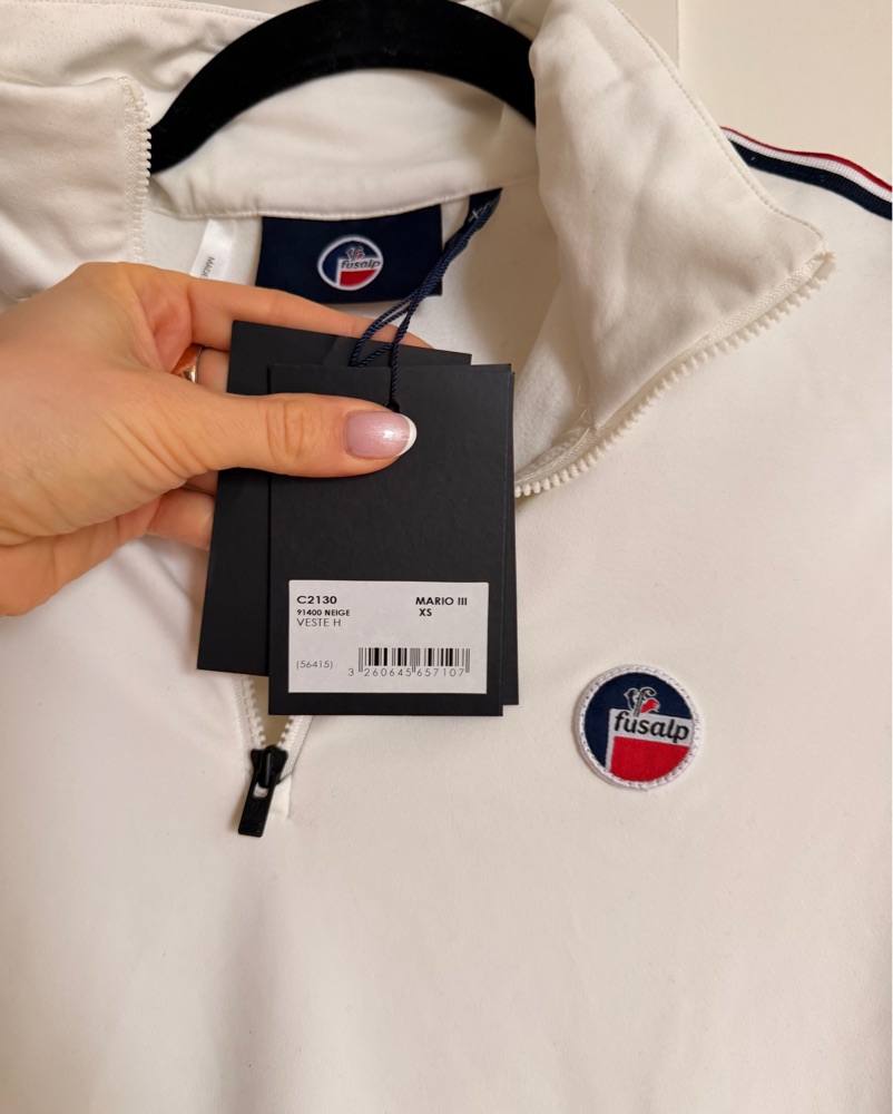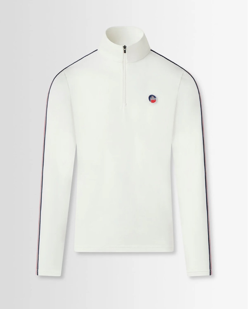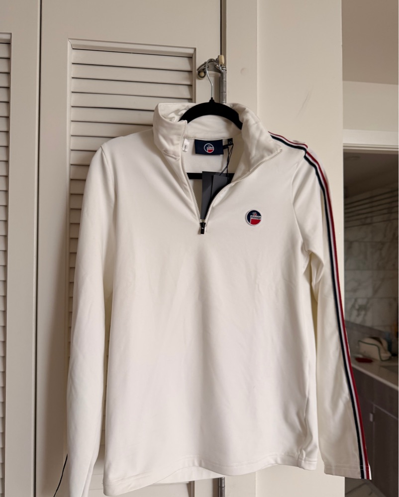 Made of brushed Powerstretch fabric with contrasting stripes on the sleeves. A zip-up neckline completes its iconic look. Warm inside layer. Fits sizes S-M.