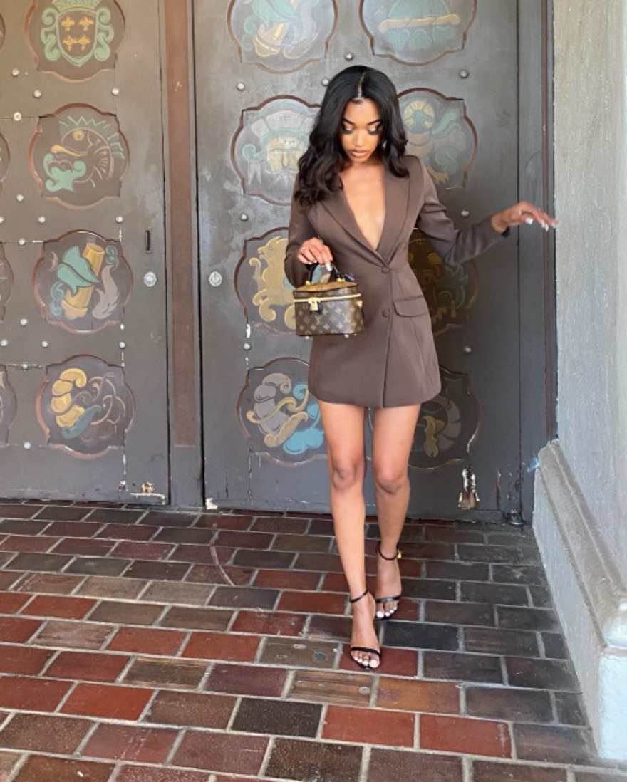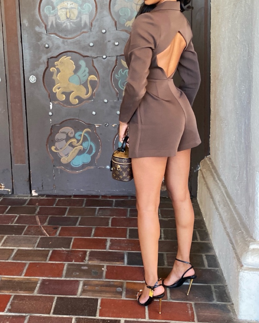 • brand new, worn once • Double breasted blazer design • Zip closure shorts with large cut-out at back • silky soft lining •rich chocolate brown colour