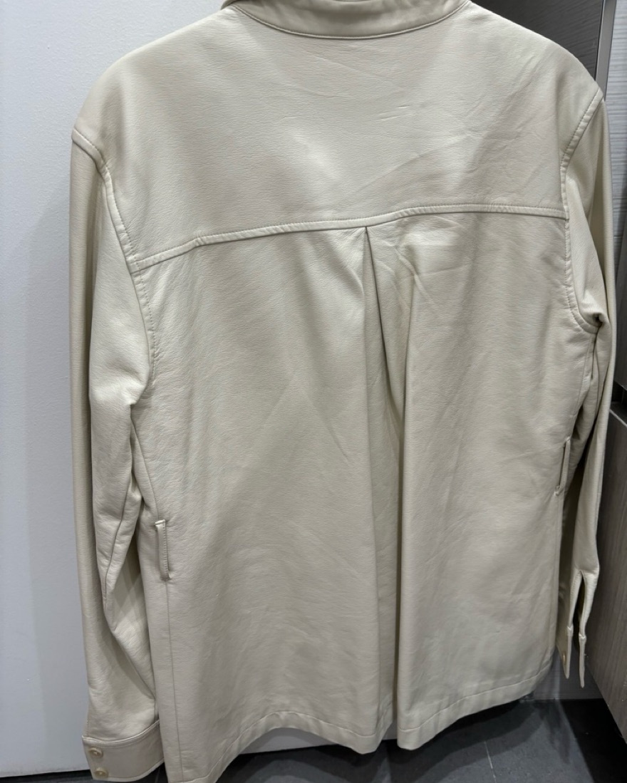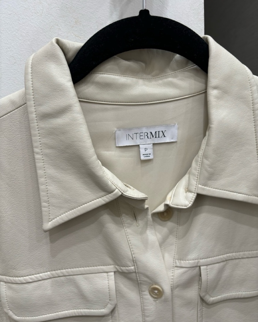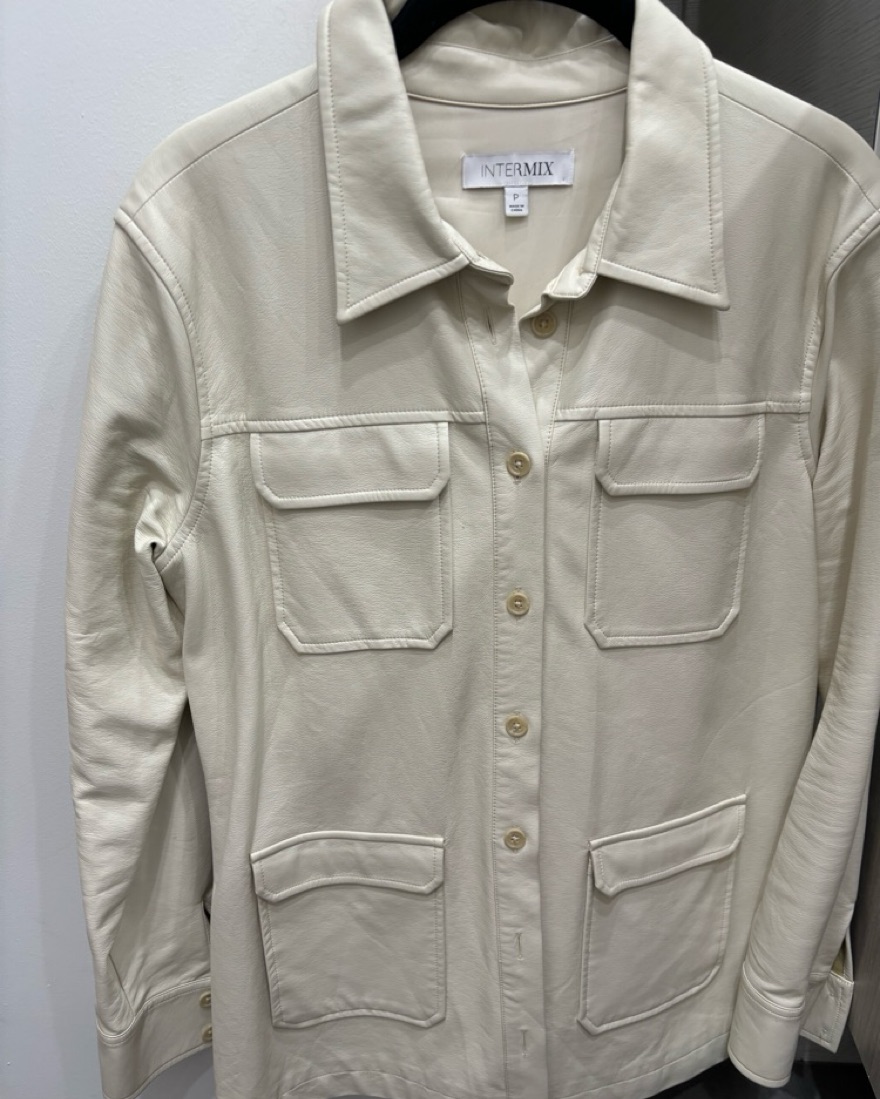 Cream Colored leather shirt jacket. Perfect for work and fall!