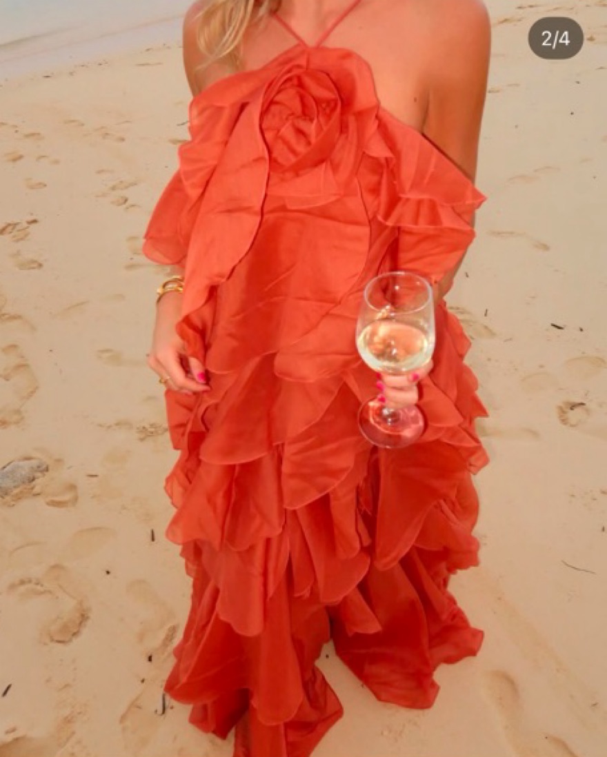 Aje pandorea maxi dress in coral clay. size 4 = us xs
