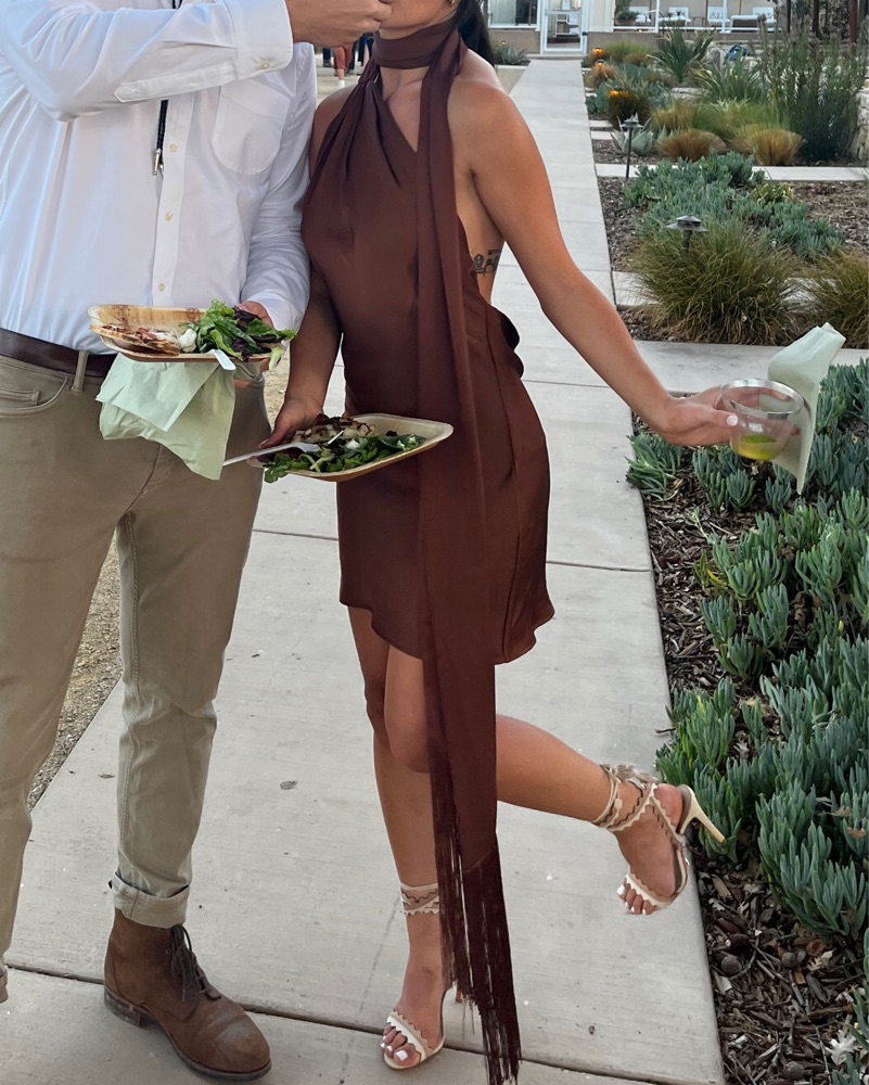 Stunning brown dress with a western flare and fringe scarf (can be worn multiple ways)