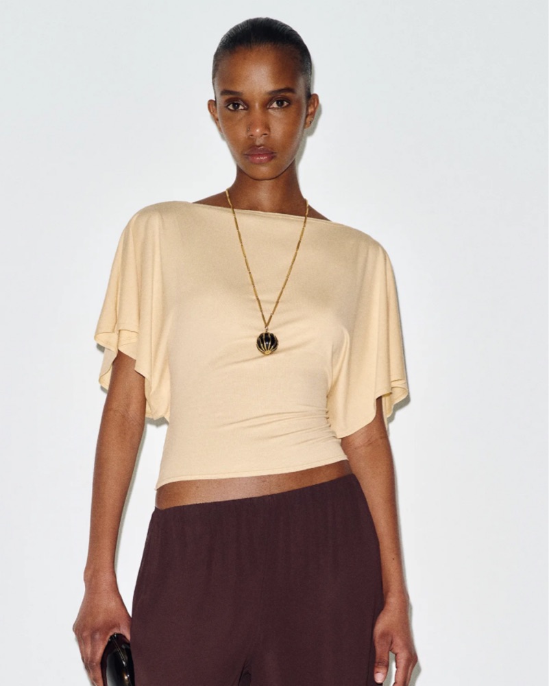 Reformation Avery Knit Top in color Parmesan - size XS. This stylish top features a flattering flutter sleeve design and a modern, relaxed fit. Pair it with your favorite skirt or trousers for an effortless, elevated look. NWT