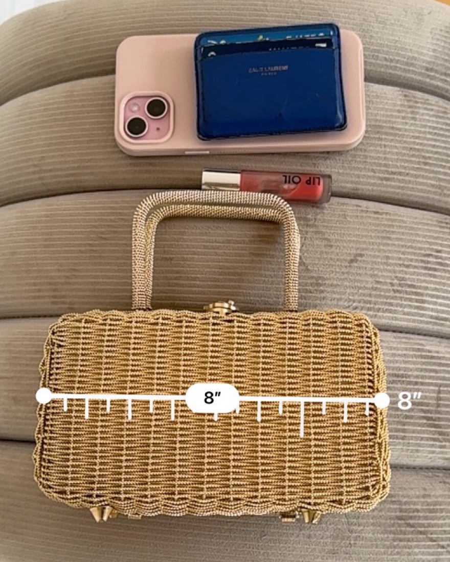 A stunning statement bag for any formal event! Swipe for measurements — this is my go-to for weddings, galas, etc. highly recommend if you’re in need of a small clutch!