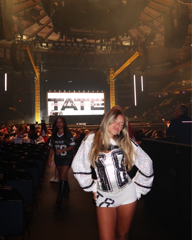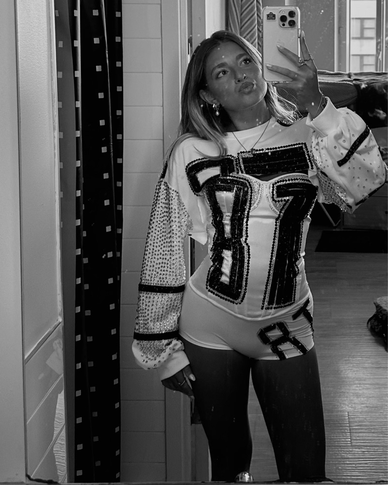 I hand rhinestoned & made this outfit for my Miss Possessive Tour shows, and would love for you to show it off at one of yours! If so, please tag me for credits on TikTok @arianaraee and Instagram @arianardicarlo 🖤 Please wear with delicate care!