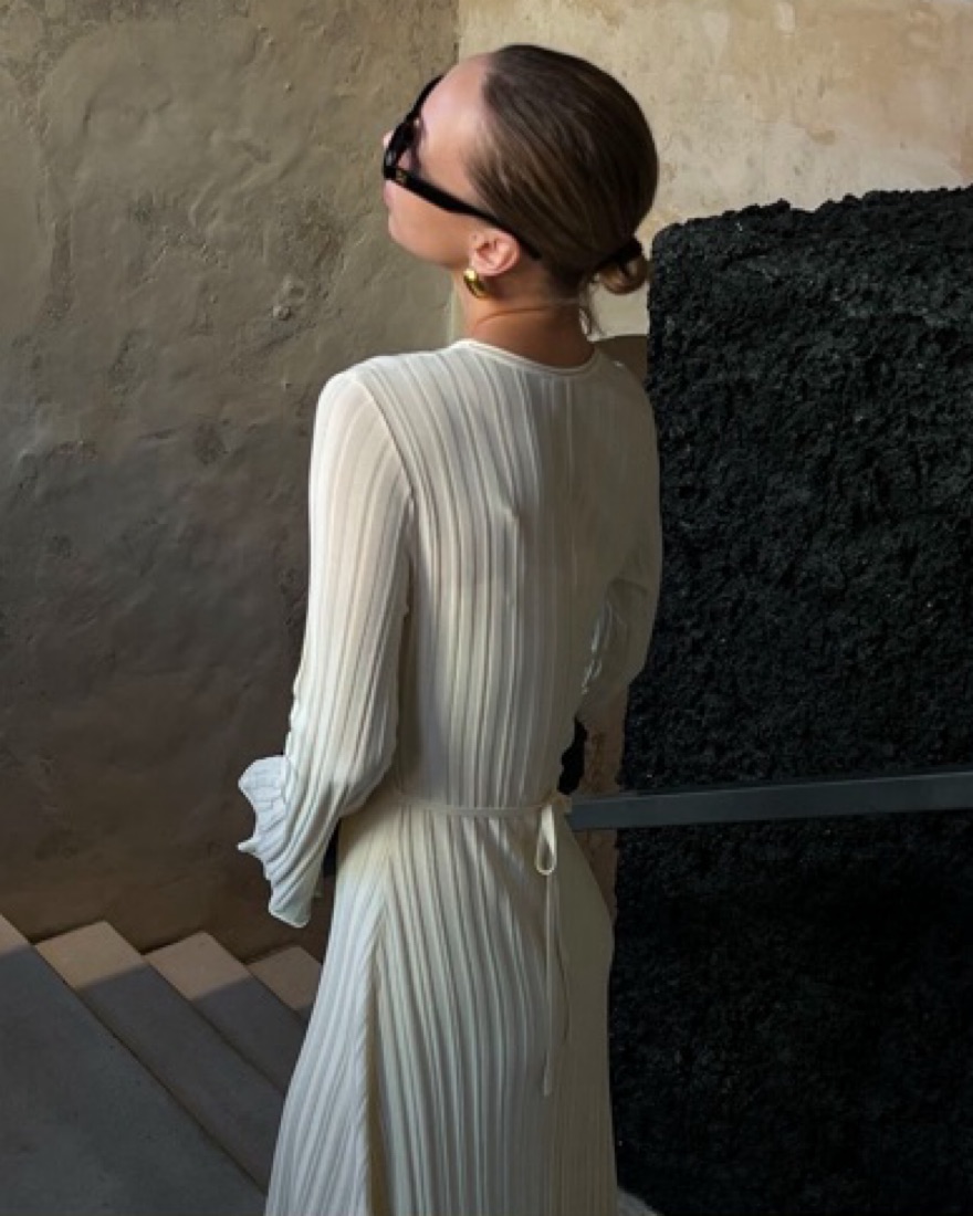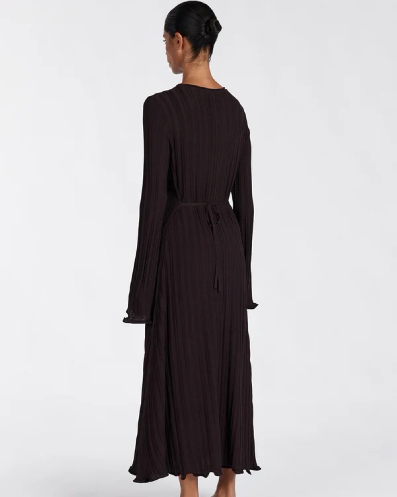Dissh Sylvia bitter chocolate knit midi dress (XS). Dark brown / espresso color - pics in white just for reference for the style! Long sleeve ribbed dress with ties at the side to cinch the waist - also comes with a removable under slip lmk if interested! I’m 5’3 and hits right above the ankles.