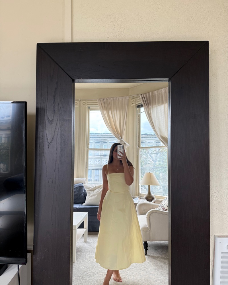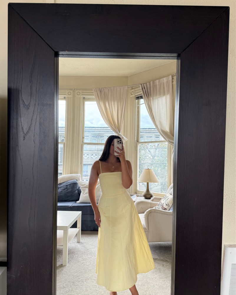 'Dolly' feels just like a fresh ray of sunshine. The soft lemon stretch cotton is cut to a vintage-inspired silhouette - it's a simple fit and flare shape that beautifully frames the body and zips at the back. Elegant volume continues in the skirt with plenty of movement guaranteed and two handy si