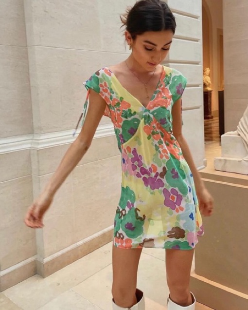 SOLD OUT. Sheer mini dress in “water babies” green and yellow floral print. Comes with nude slip. My fav summer dress!