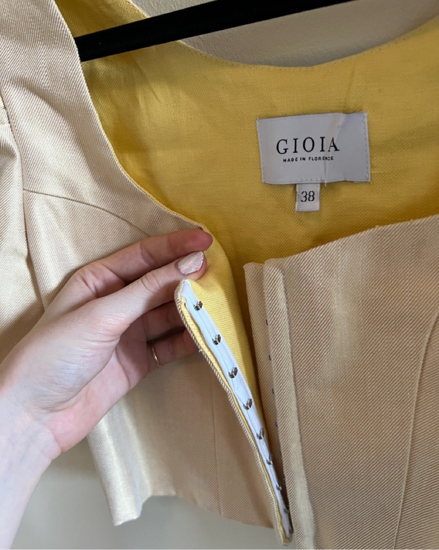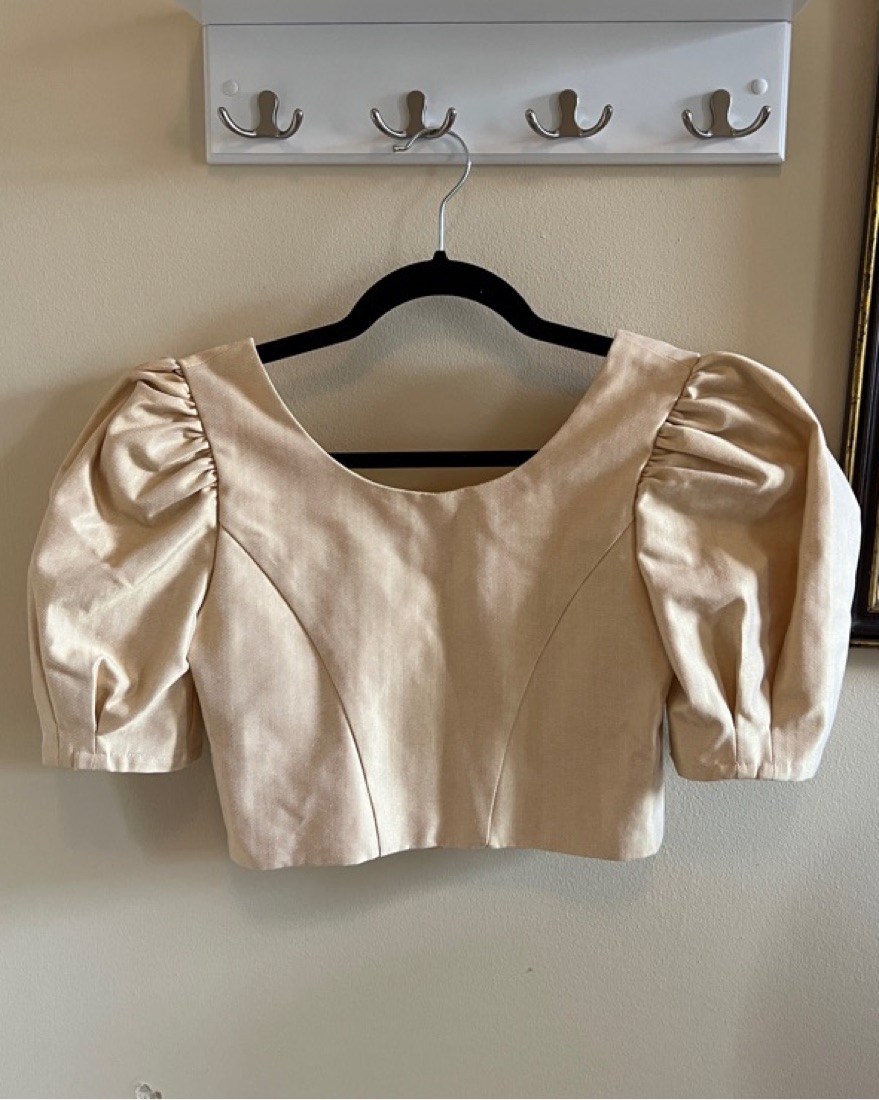 Gorgeous puff sleeve formal top made from 100% silk in Italy. Excellent condition. Color is more light gold yellow and last pic is for fit.