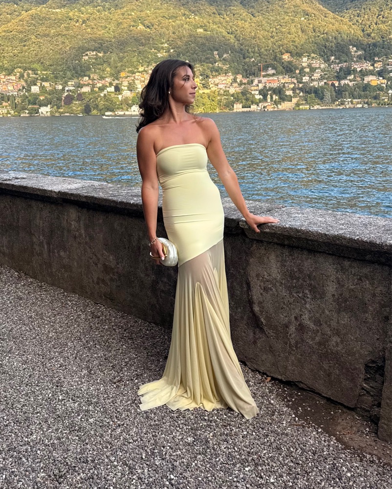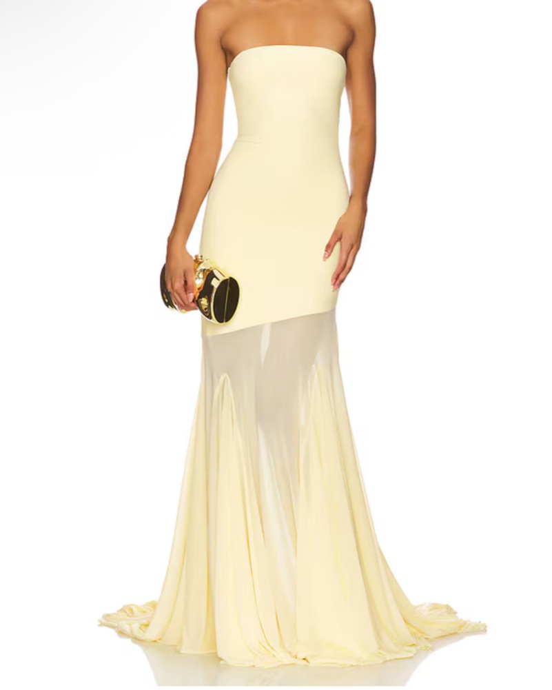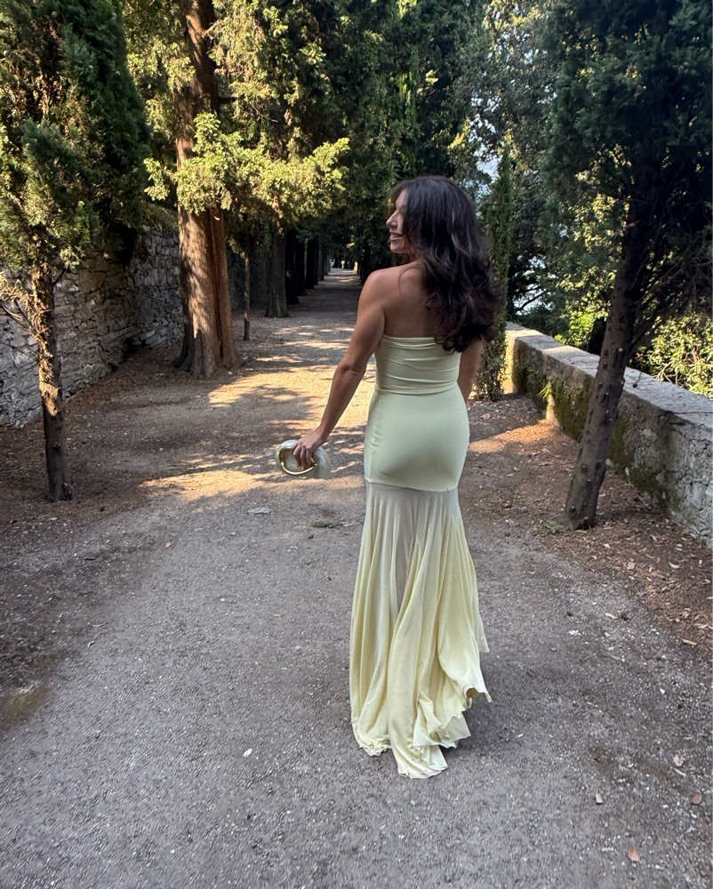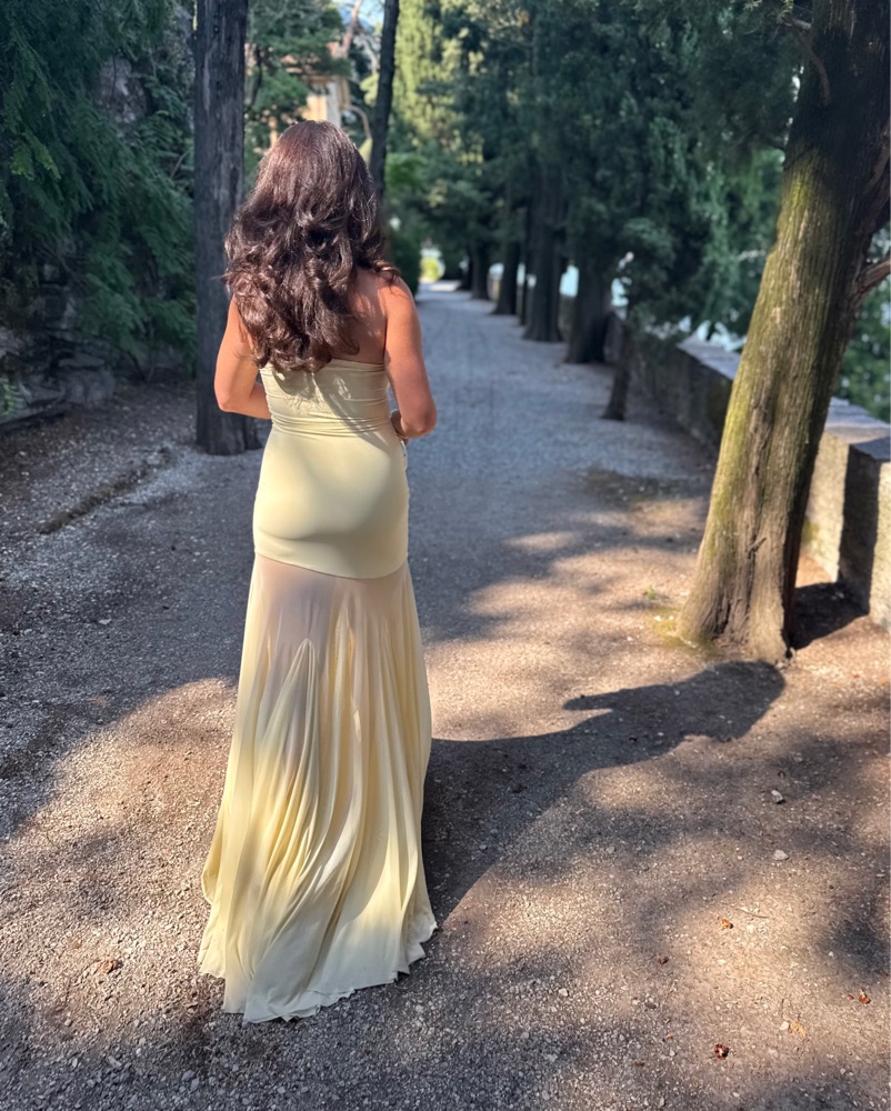 Deme By Gabriella Dahlia Gown. Size Small. Hemmed at the bottom to remove train. I am 5’4 and wore a chunky heal so still long.