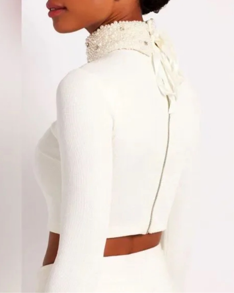 NWT PATBO Knit Cropped Mock Neck Top with Detachable Pearl Collar. Size 8 fits size small. Patbo sizing is funky, size 2 was way too tiny.