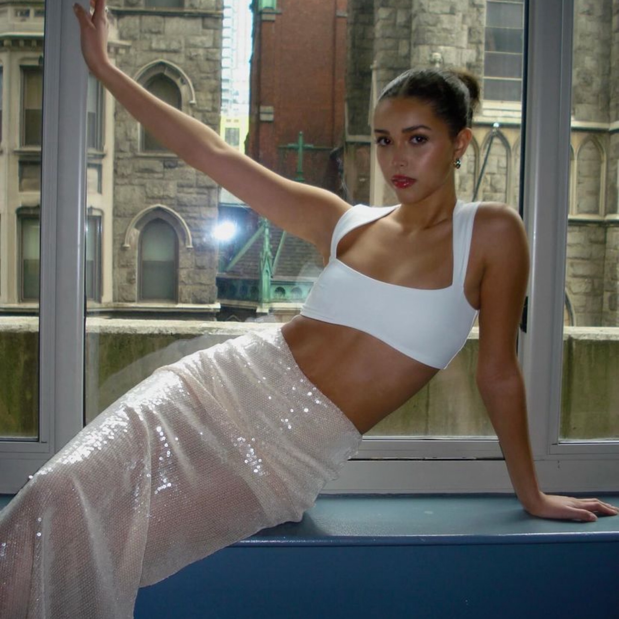 Riki Sheer Sequin Maxi Skirt by Edikted - Pickle