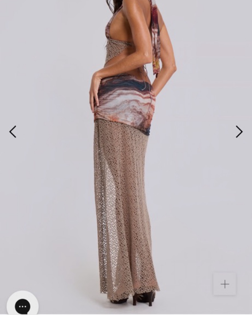 Tank is tie halter neck, skirt has a tie as well. Both stretchy. UK 10 skirt, medium top. Both fit like mediums.