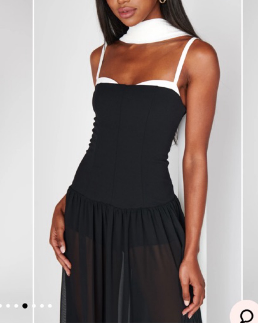 Stunning black tie or cocktail dress! Super fun with contrasting black and white neck tie