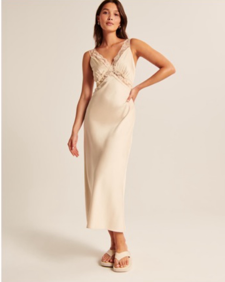 Cream Satin Slip Dress by Abercrombie and Fitch - Pickle