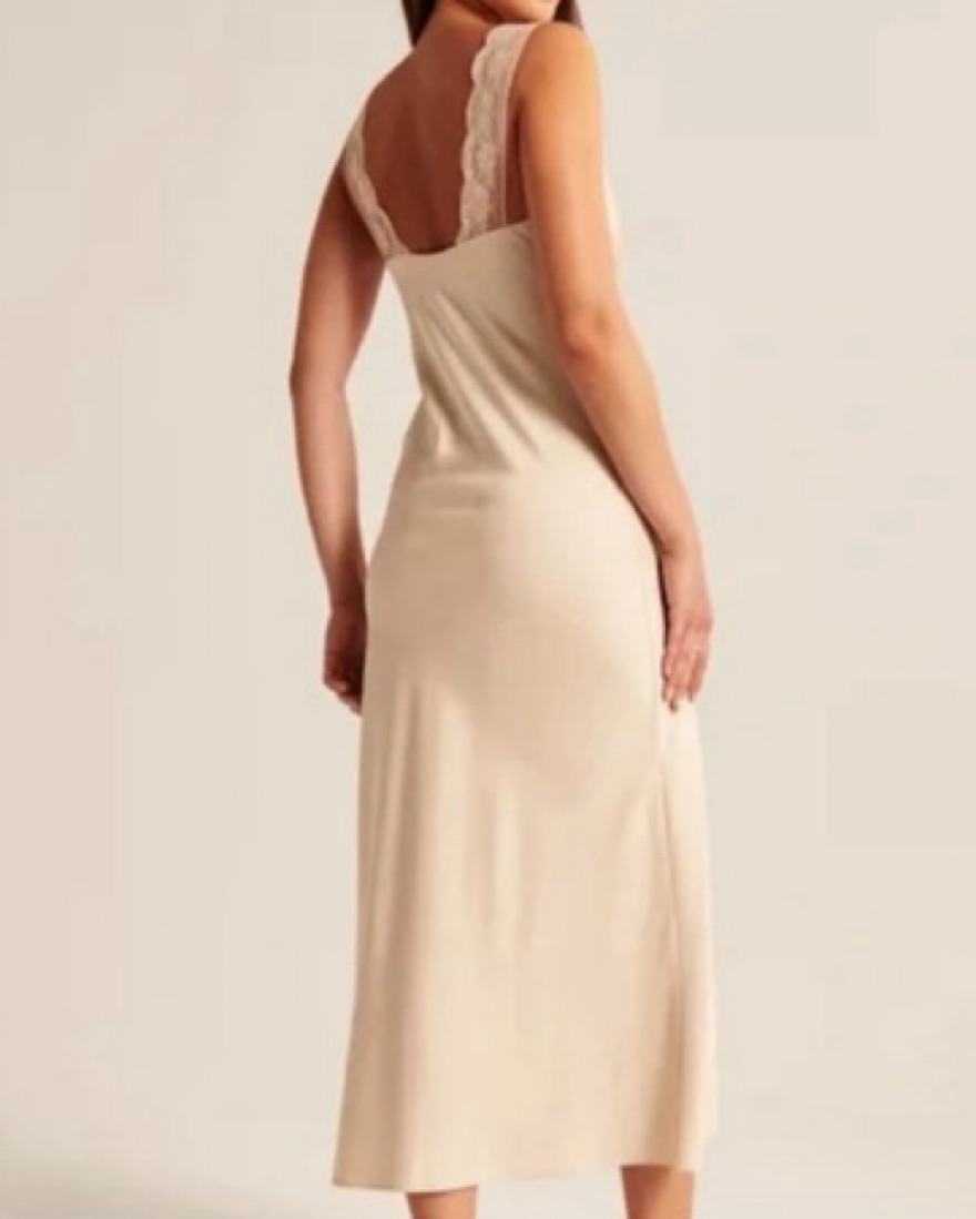 Slip dress with lace trim that can easily be dressed up or down :) dress is an off white / cream color