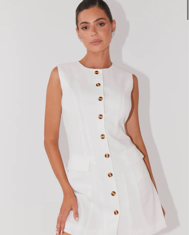 White Linen Button Down Mini Dress by Peppermayo - Pickle