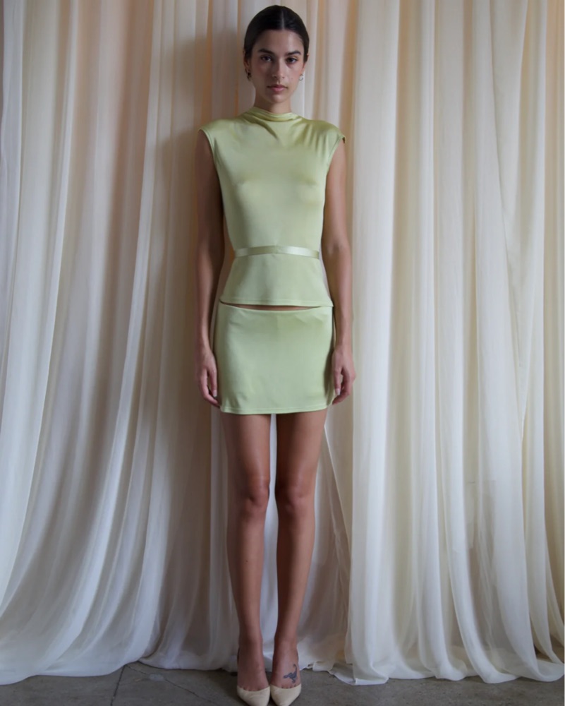 This Buci cinnamon skirt and Ember top makes the perfect set for a day to night look. The color melon is so unique and the fabric has the most comfortable and sleek feel.