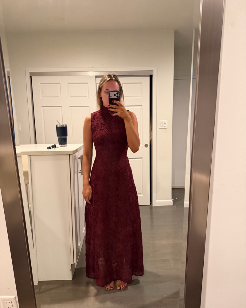 Rotate Flower Mesh Maxi in Zinfandel. Perfect condition