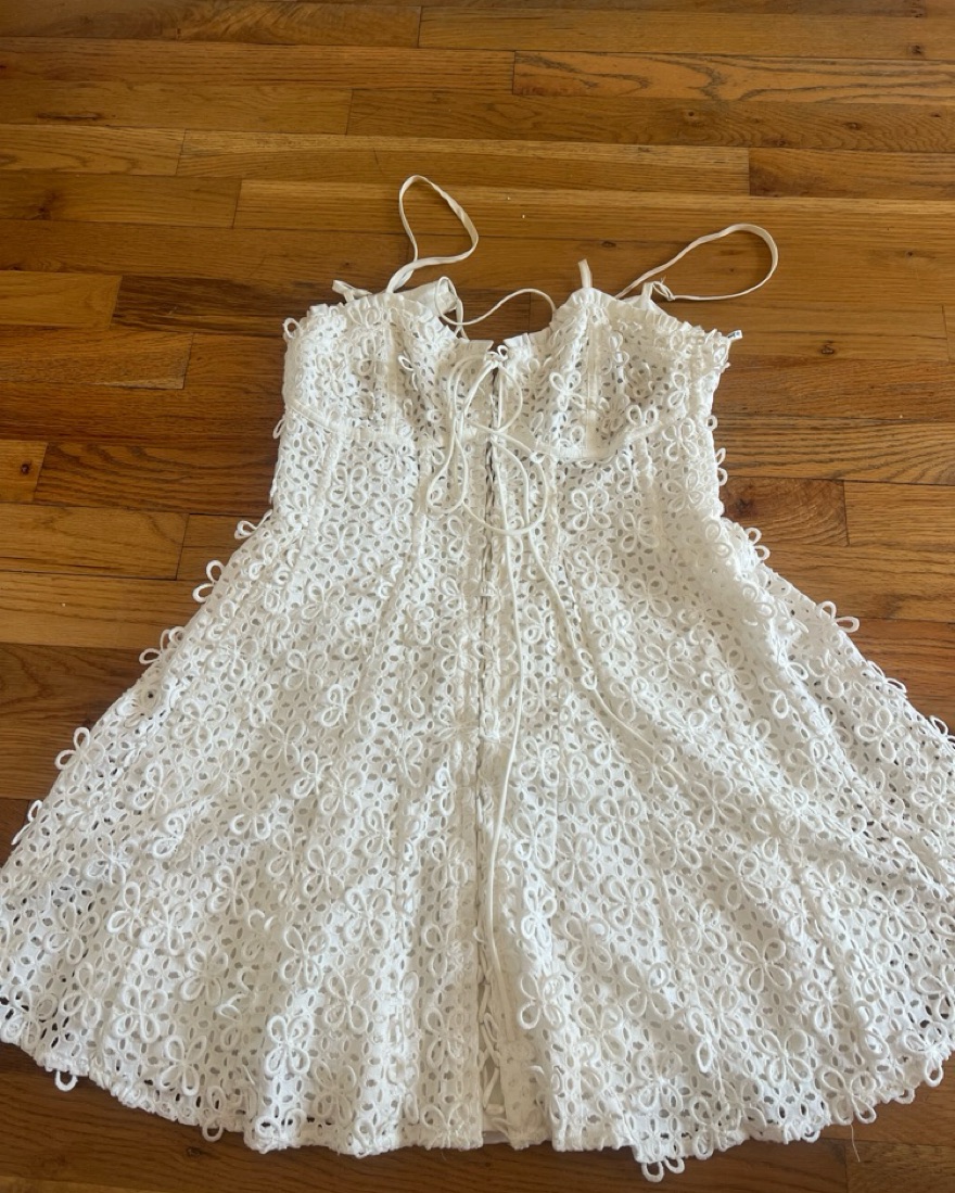 Eyelett dress really beautiful on and adjustable. Snatches you