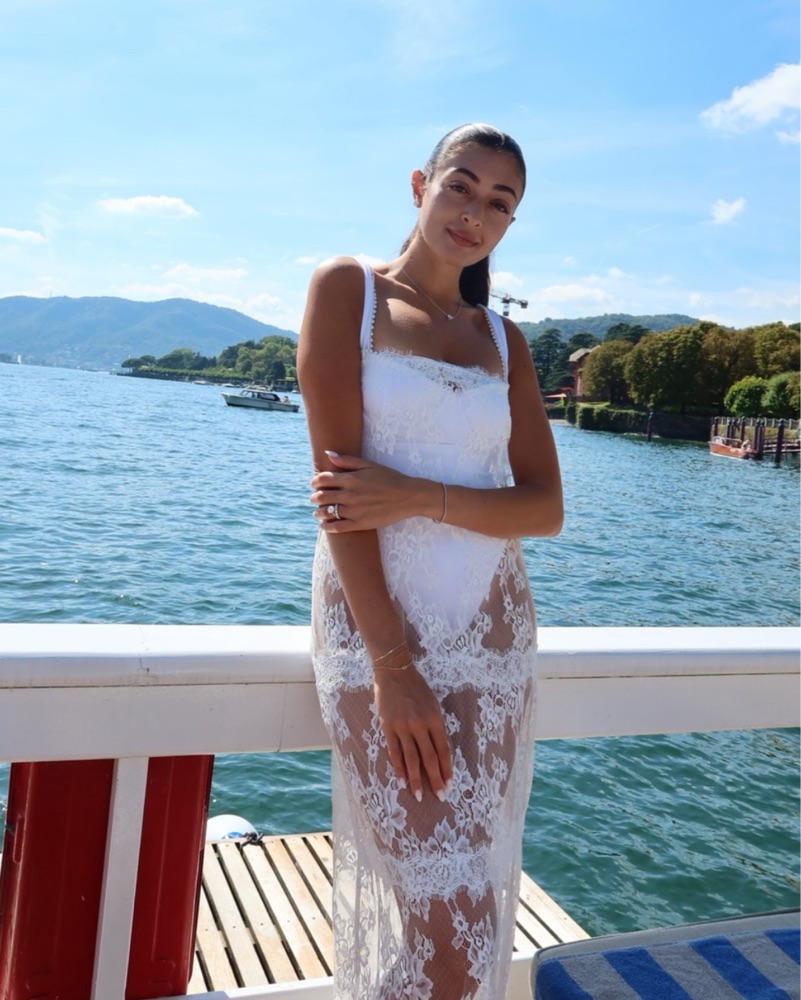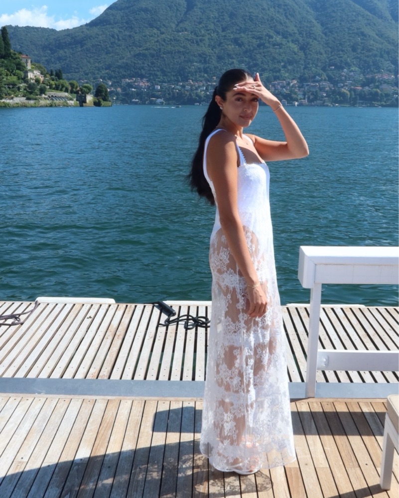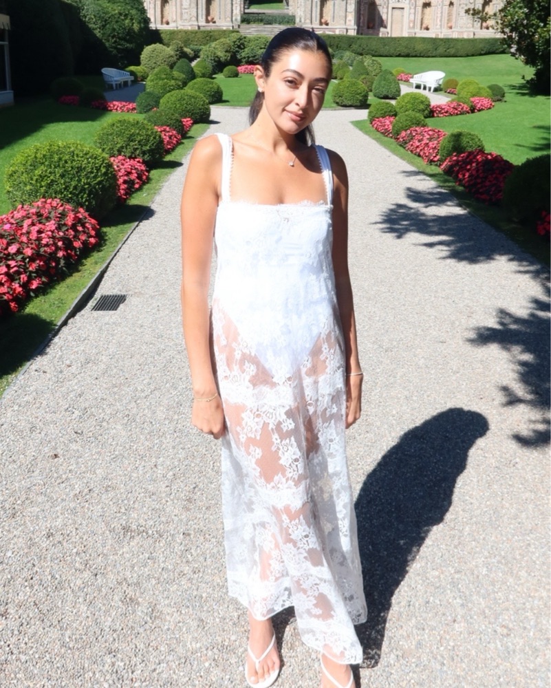 White lace maxi I wore it as a cover up! Gorgeous! Please don’t wear jewelry with this dress it will pull, super delicate! If you stain it, I will get it dry cleaned please don’t try to clean on your own