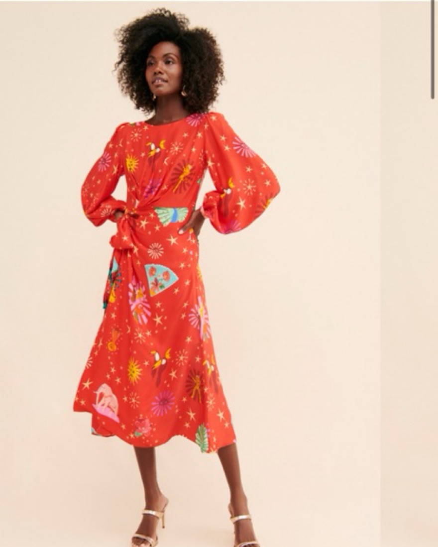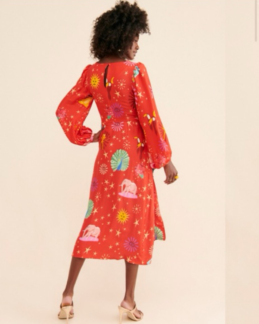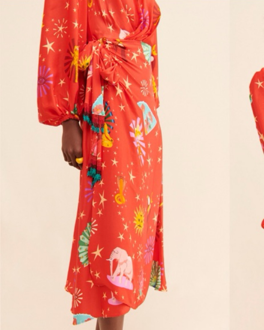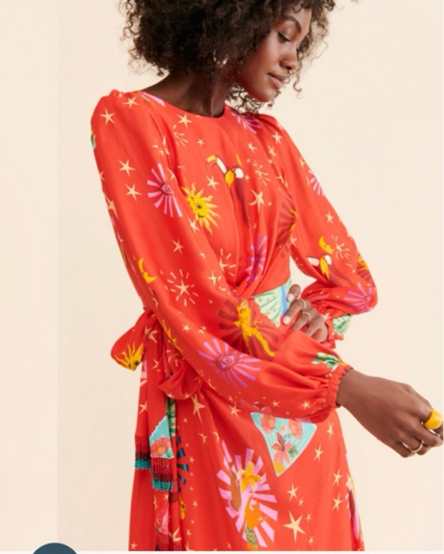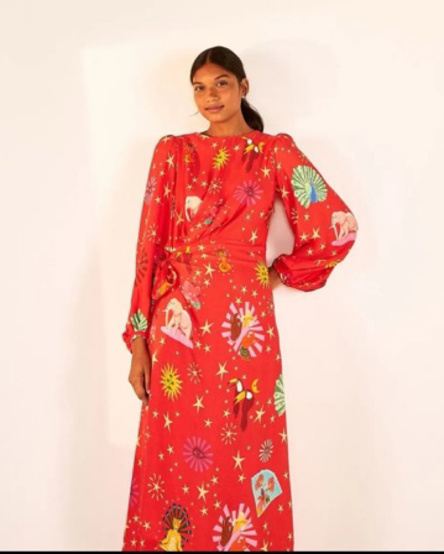 Farm Rio Lotus Star Wrap Red Dress