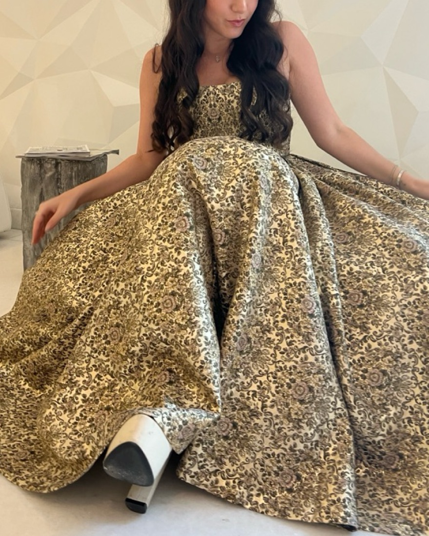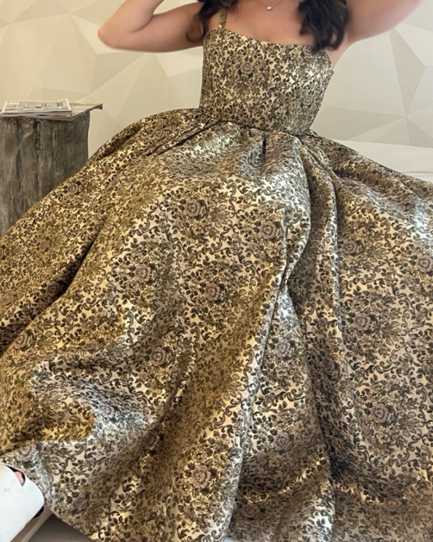 Absolutely gorgeous dress, super high-quality. You can just tell by the weight of the gown, the materials were so beautiful, and there were even pockets. It was so well fitting, but also stretchy for the day, fit in all the right spots!