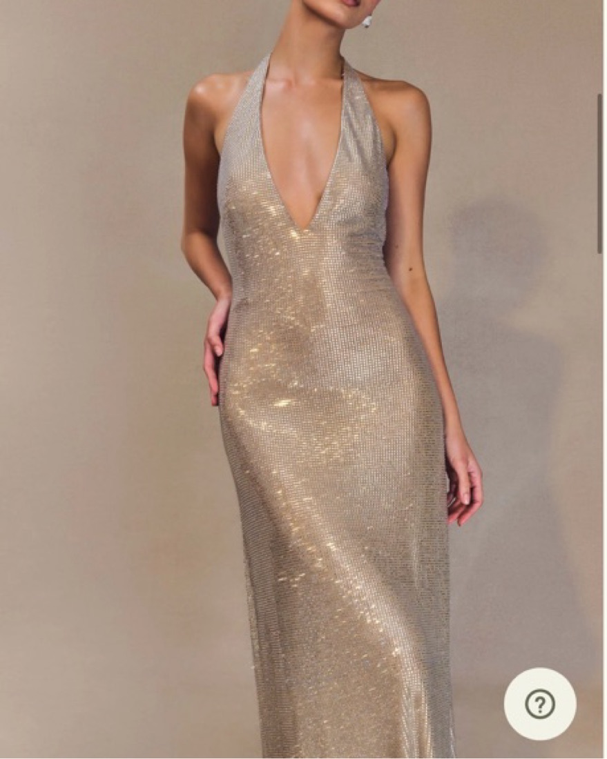 Fits size small perfectly. Meshki The GENIE Diamante Halter Midi Dress is a captivating blend of elegance and allure. Featuring a striking halter neckline. Designed to fit and flatter your figure, the fitted silhouette creates
