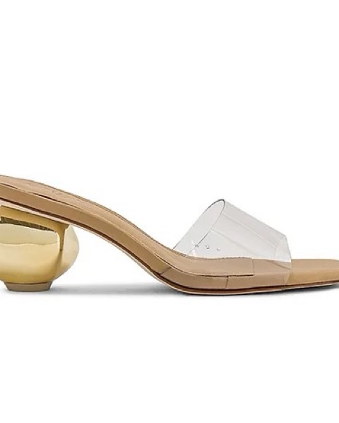 Gently used-worn 2 times. Size 37/US 7, fits 7-7.5. Heel Height: 2.25”. The Tyra is an innovative take on the classic sandal. Features a clear vinyl toe strap to show off your foot & a sculptural spherical heel in dazzling gold. The lightly cushioned leather soles add a dose of luxurious comfort.