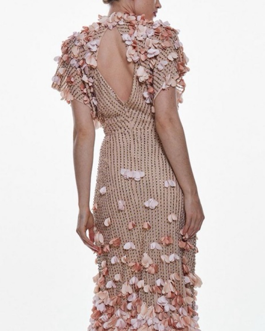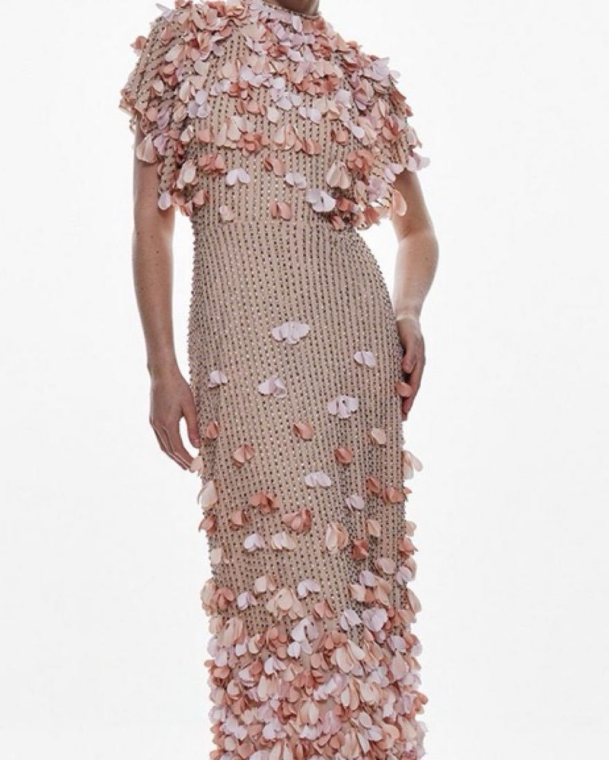 PETITE Crystal Applique Angel Sleeve Woven Midaxi Dress. Karen Millen petite is Expertly designed for those 5'3" and under