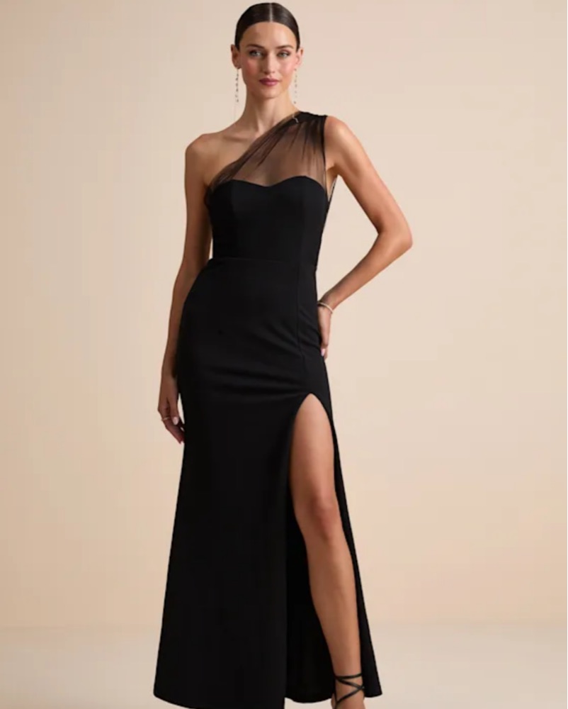 One Shoulder Organza Long Dress by lulu’s - Pickle
